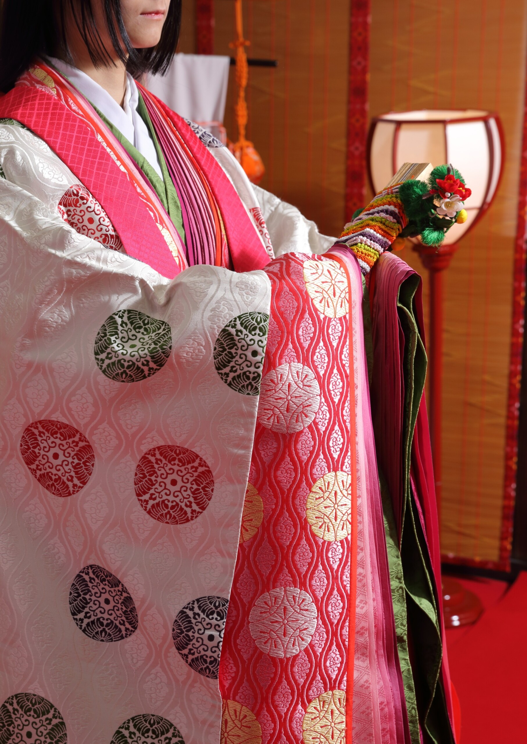 白色の唐衣と裳に映えて、すっごく素敵♪